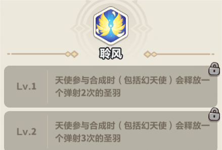 【聆风】:天使参与合成时(包括幻天使)会释放一个弹射2次的圣羽。